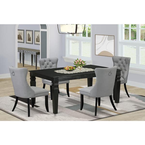 5-Piece Rectangle Black Finish Solid Wood Top Dining Table with 4 Upholstered Chairs with Butterfly Leaf Lattice Back