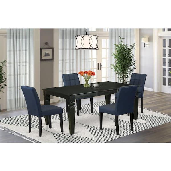 5-Piece Rectangle Black Finish Solid Wood Top Dining table with 4 Chairs with Butterfly Leaf Lattice Back
