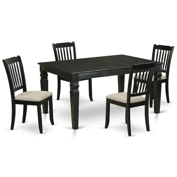 5-Piece Rectangle Black Finish Solid Wood Top Dining table with 4-Chairs with Butterfly Leaf Slat Back