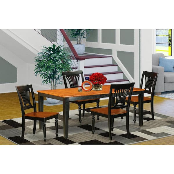 5-Piece Rectangle Black and Cherry Finish Solid Wood Top Dining Table with 4-Chairs with Lattice Back