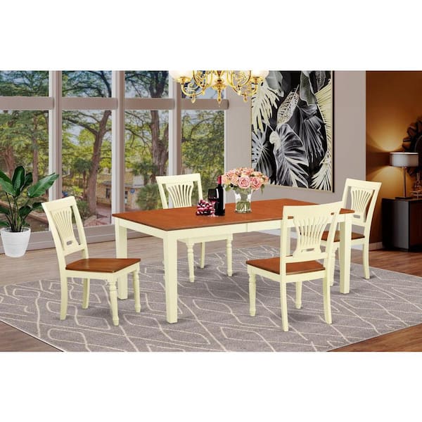 5-Piece Rectangle Buttermilk and Cherry Finish Solid Wood Top Dining Table with 4-Chairs with Lattice Back
