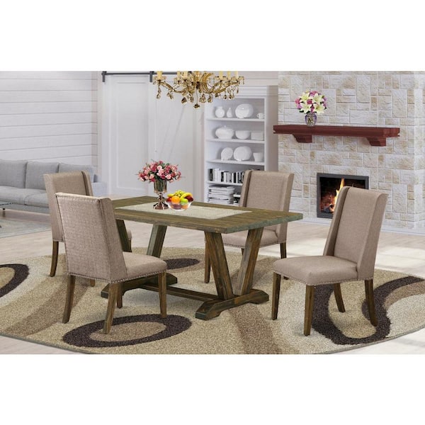 5-Piece Rectangle Distressed Jacobean Finish Solid Wood Top Dining Table with 4 Upholstered-Chairs with Lattice Back