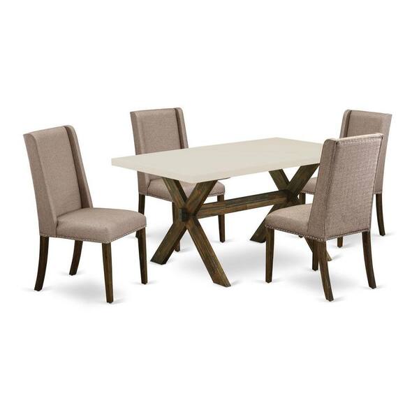 5-Piece Rectangle Distressed Jacobean Finish Solid Wood Top Dining Table with 4 Upholstered-Chairs with Lattice Back