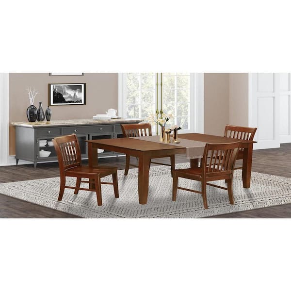 5-Piece Rectangle Mahogany Finish Solid Wood Top Dining table with 4-Chairs with Lattice Back