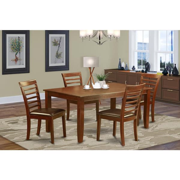 5-Piece Rectangle Mahogany Finish Solid Wood Top Dining table with 4-Chairs with Lattice Back