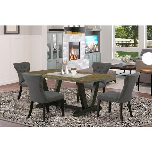 5-Piece Rectangle Natural Oak Finish Solid Wood Top Dining Table with 4 Upholstered Chairs with Lattice Back
