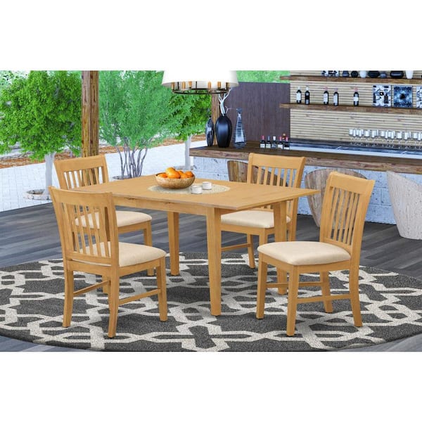5-Piece Rectangle Natural Oak Finish Solid Wood Top Dining table with 4-Chairs with Lattice Back