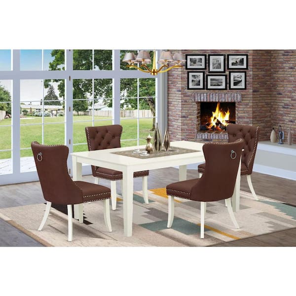 5-Piece Rectangular Linen White Finish Solid Wood Top-Upholstered Dining Room Set-Seats 4