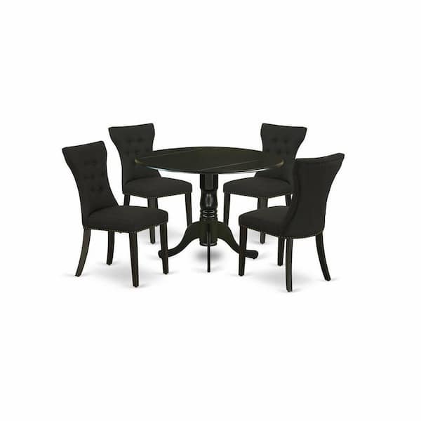5-Piece Round Black Finish Solid Wood Top Dining Table with 4 Parson Chair with Lattice Back