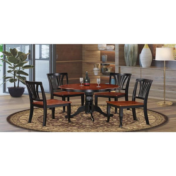 5-Piece Round Black Finish Solid Wood Top Dining table with 4 Chairs with Lattice Back