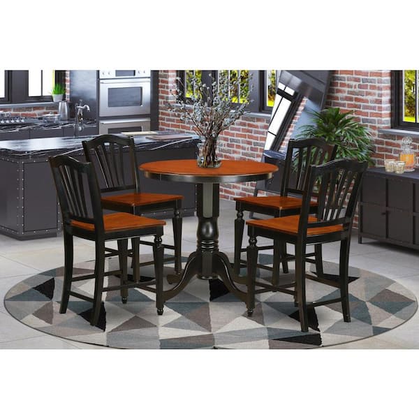 5-Piece Round Black Finish Solid Wood Top Dining table with 4 Chairs with Lattice Back