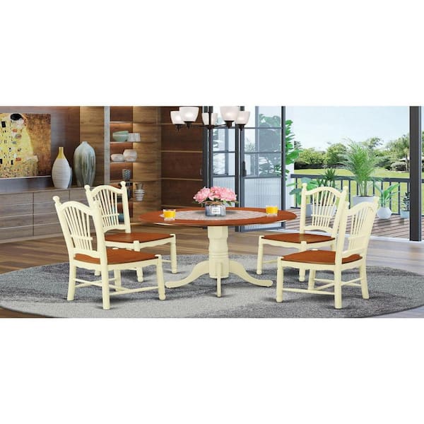 5-Piece Round Buttermilk and Cherry Finish Solid Wood Top Dining table with 4 Chairs with Lattice Back