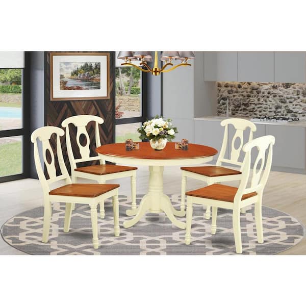 5-Piece Round Buttermilk and Cherry Finish Solid Wood Top Dining table with 4 Chairs with Lattice Back