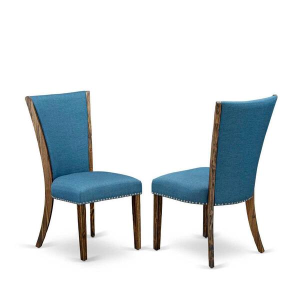 5-Piece Round Distressed Jacobean Finish Solid Wood Top Dining Table with 4 Parson Chair with Lattice Back