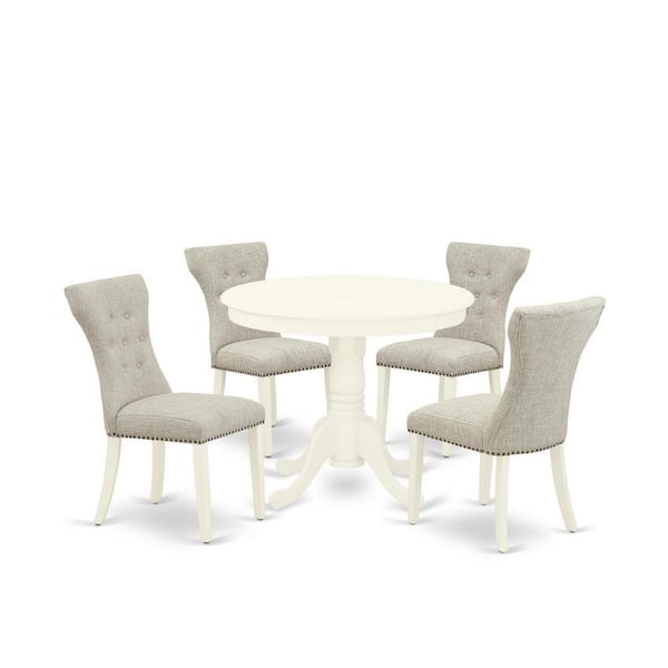 5-Piece Round Linen White Finish Solid Wood Top Dining Table with 4 Parson Chair with Lattice Back