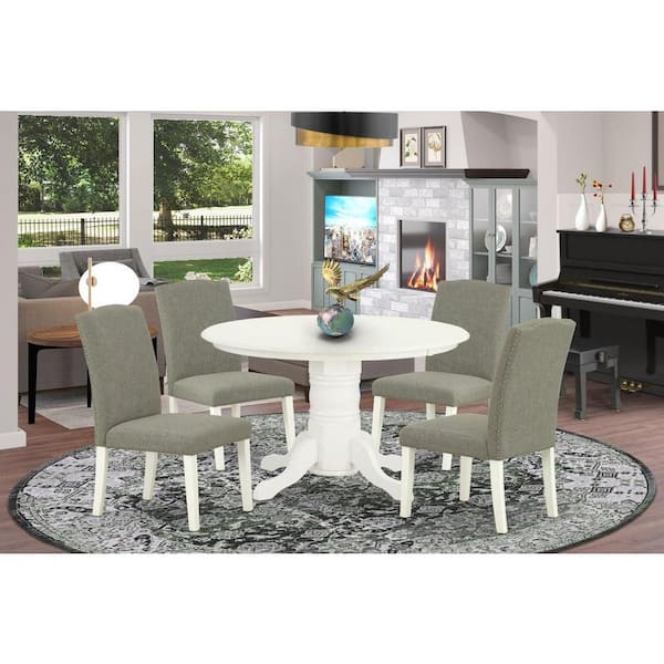 5-Piece Round Linen White Finish Solid Wood Top Dining Table with 4-Parson Chair with Lattice Back