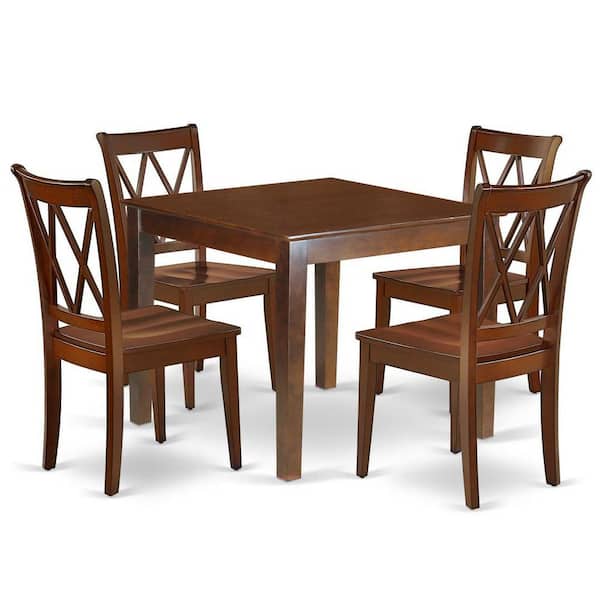 5-Piece Round Mahogany Finish Solid Wood Top Dining Table with 4 Chairs with Cross Back