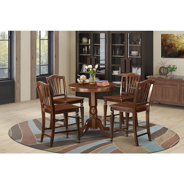 5-Piece Round Mahogany Finish Solid Wood Top Dining table with 4 Chairs with Lattice Back