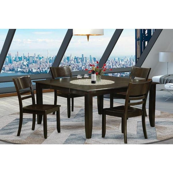 5-Piece Square Cappuccino Finish Solid Wood Top Dining table with 4 Chairs with Lattice Back