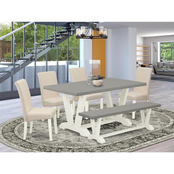 6-Piece Natural Oak Finish Solid Wood Top dining Table with 1-Bench and 4-Chairs with Lattice Back