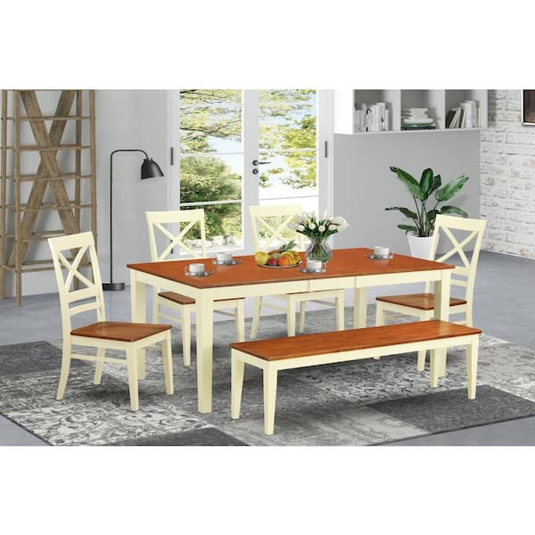 6-Piece Rectangle Buttermilk and Cherry Finish Solid Wood Top dining Table with 1-Bench and 4-Chairs with Lattice Back