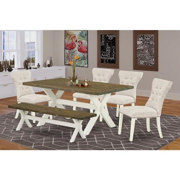 6-Piece Rectangle Distressed Jacobean Finish Solid Wood Top Dining Table with 1-Bench, 4-Chairs with Lattice Back