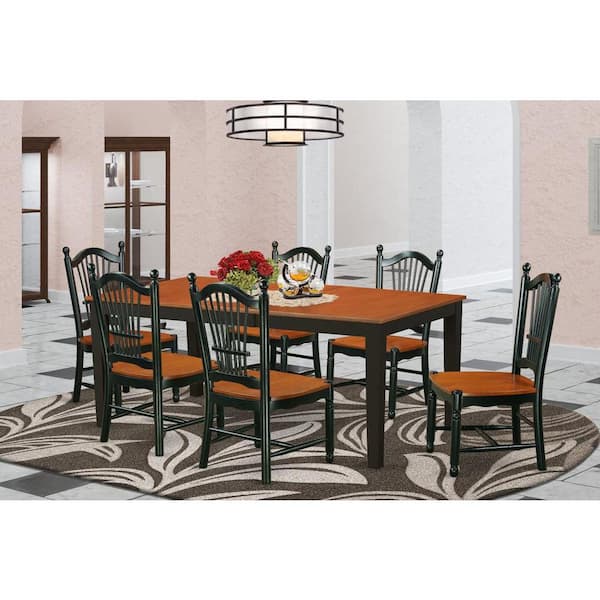 7-Piece Black and Cherry Finish Solid Wood Top Dining Table with 6 Chairs with Lattice Back