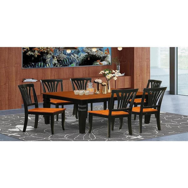 7-Piece Black and Cherry Finish Solid Wood Top Dining Table with 6 Chairs with Lattice Back