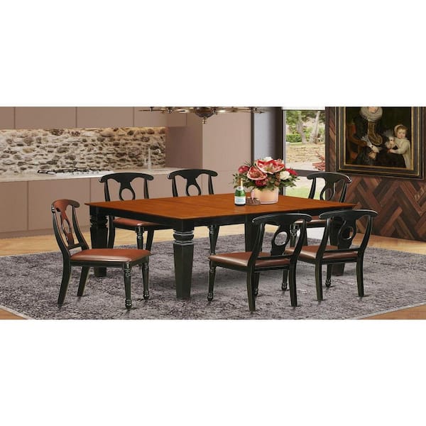 7-Piece Black and Cherry Finish Solid Wood Top Dining Table with 6 Chairs with Lattice Back