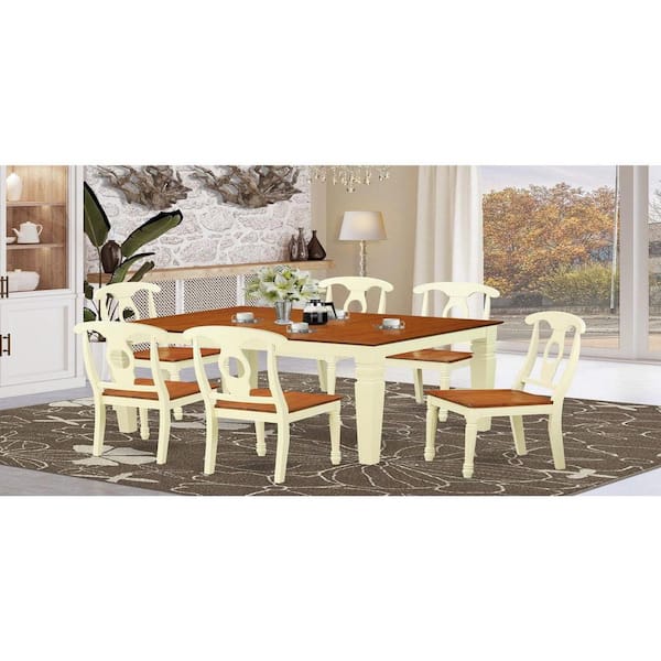 7-Piece Buttermilk and Cherry Finish Solid Wood Top Dining Table with 6 Chairs with Lattice Back