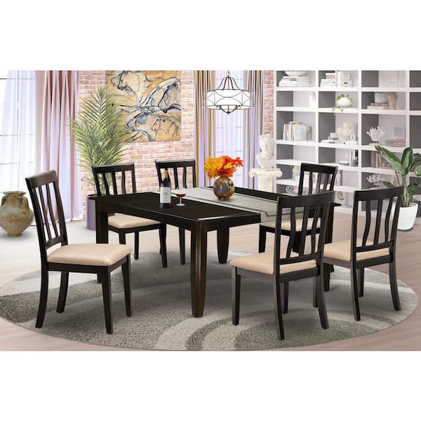 7-Piece Cappuccino Finish Solid Wood Top Dining Table with 6 Chairs with Lattice Back