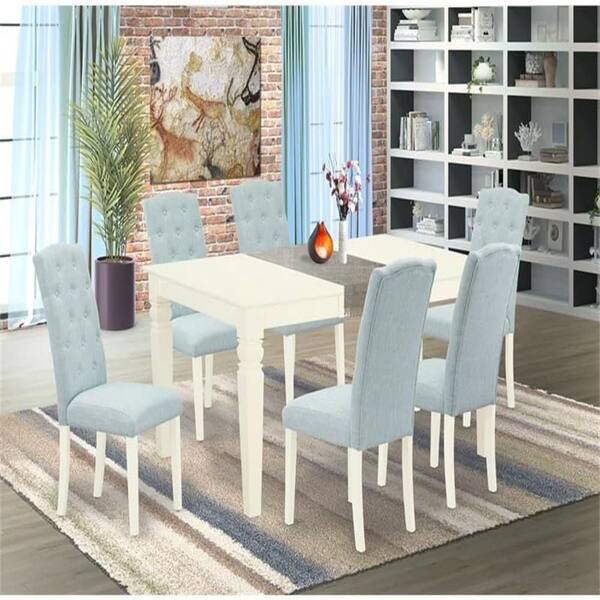 7-Piece Linen white Solid Wood Top-Rectangular Dining Room Set with Butterfly Leaf-Seats 4