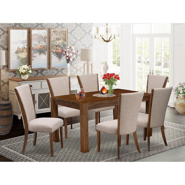 7-Piece Natural Oak Finish Solid Wood Top Dining Table with 6 Parson-Chairs with Lattice Back