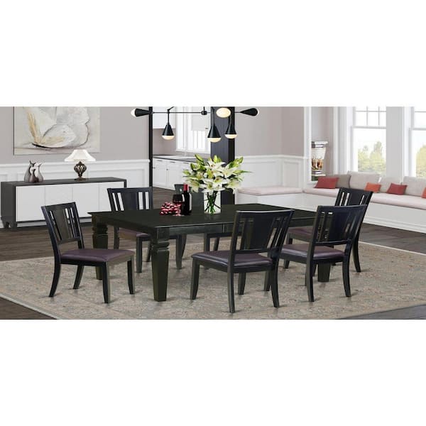 7-Piece Rectangle Black Finish Solid Wood Top Dining Table with 6 Chairs with Lattice Back