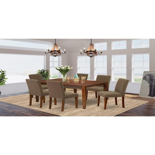 7-Piece Rectangle Mahogany Finish Solid Wood Top Dining Table with 6 Parson-Chairs with Lattice Back