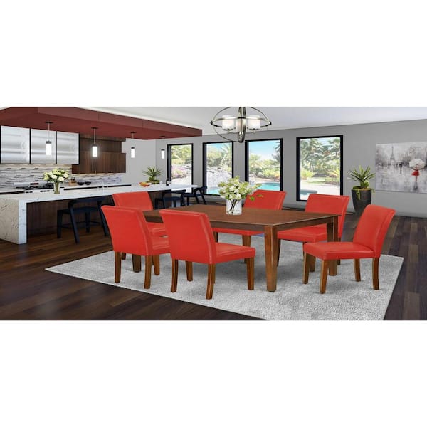 7-Piece Rectangle Mahogany Finish Solid Wood Top Dining Table with 6 Parson-Chairs with Lattice Back