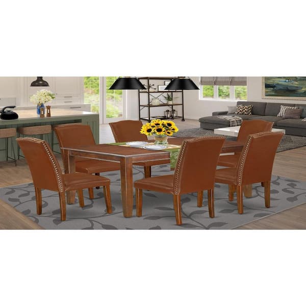 7-Piece Rectangle Mahogany Finish Solid Wood Top Dining Table with 6-Parson Chairs with Lattice Back