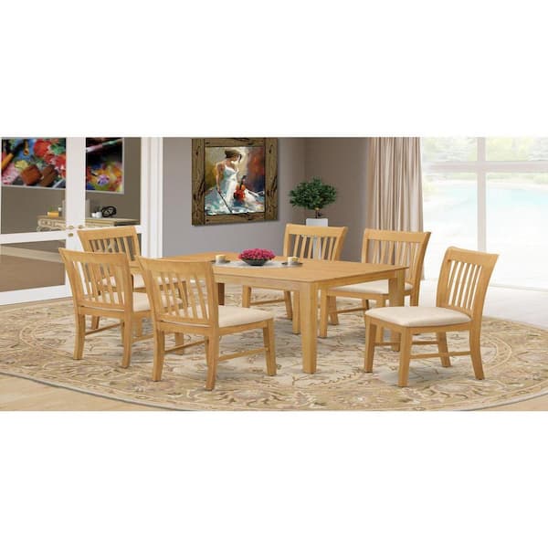 7-Piece Rectangle Natural Oak Finish Solid Wood Top Dining Table with 6 Chairs with Lattice Back