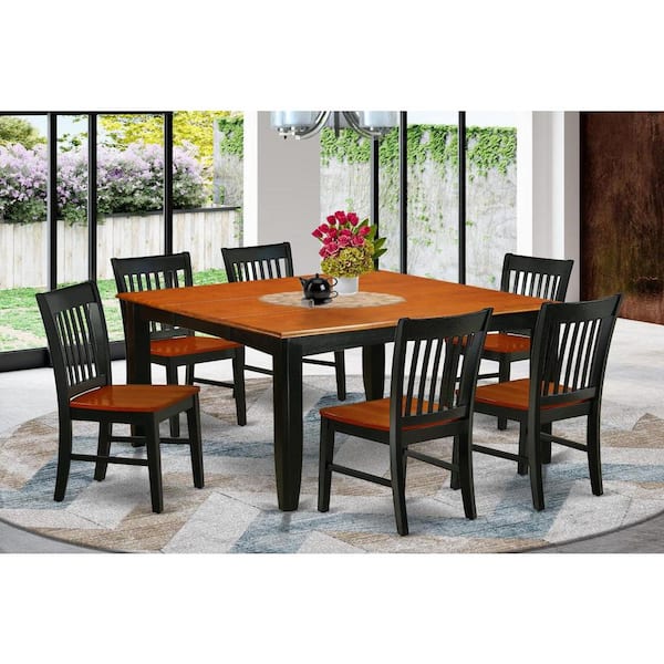 7-Piece Square Black & Cherry Finish Solid Wood Top Dining Table with 6-Chairs with Butterfly Leaf Lattice Back