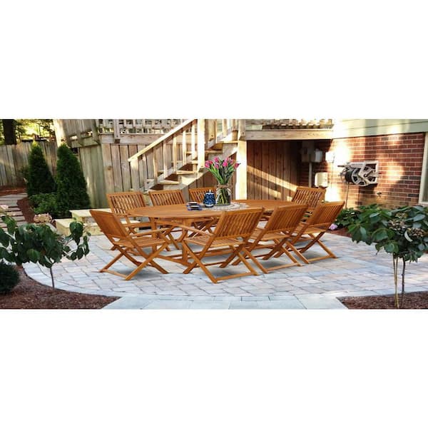 9-Piece Natural Oak Finish Solid Wood Top Dining Table with 8 Chairs with Lattice Back