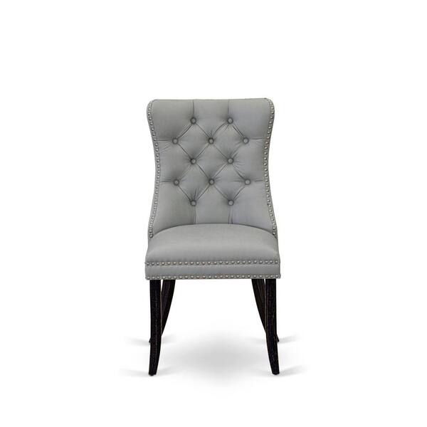 Sand Blasted Black, Parson Kitchen Chairs - Light Gray Faux Leather Upholstered Dining Chairs, Set of 2