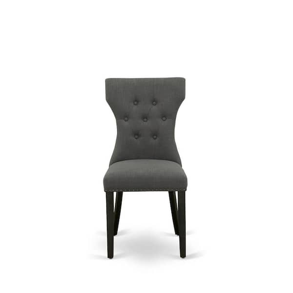 Wirebrushed Black, Parson Chairs - Dark Gotham Linen Fabric Upholstered Dining Chairs, Set Of 2