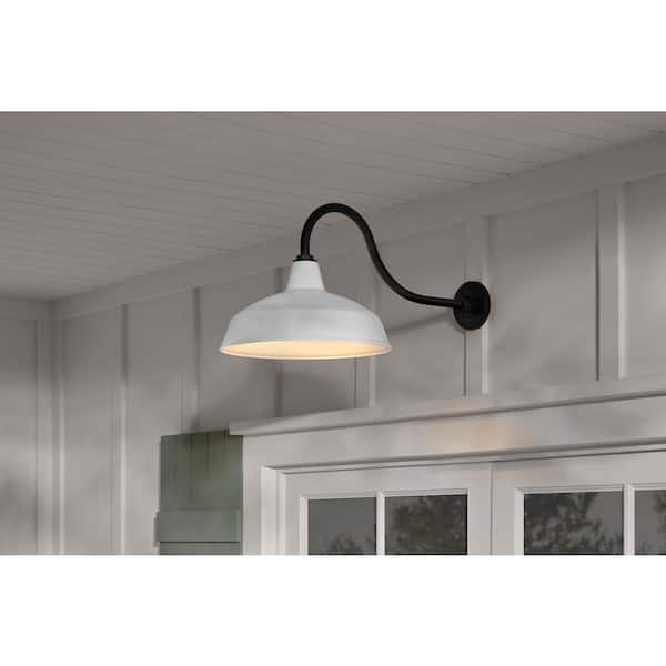 Easton 14 in. 1-Light White Hardwired Outdoor Wall Light Lantern Sconce with Glossy Finish