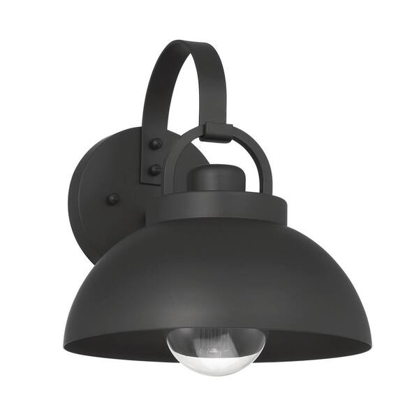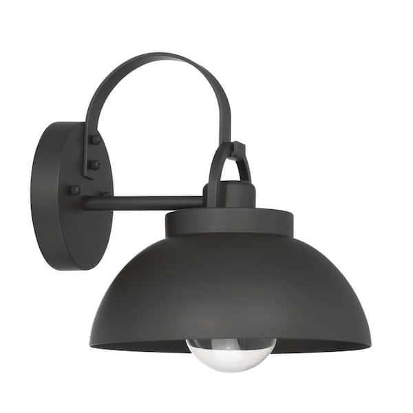 Easton Matte Black Metal Shade and Exposed Bulb Wall Mounted Outdoor Lantern Sconce , No Bulb Included