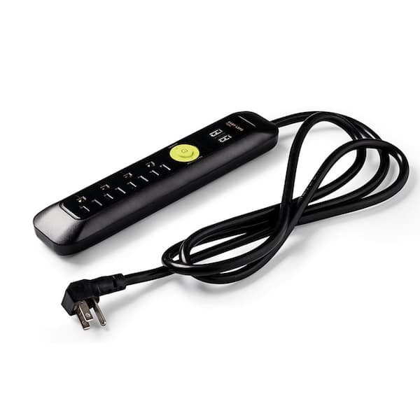 6 ft. Black 4-Outlet, 2-USB, Power Strip Surge Protector