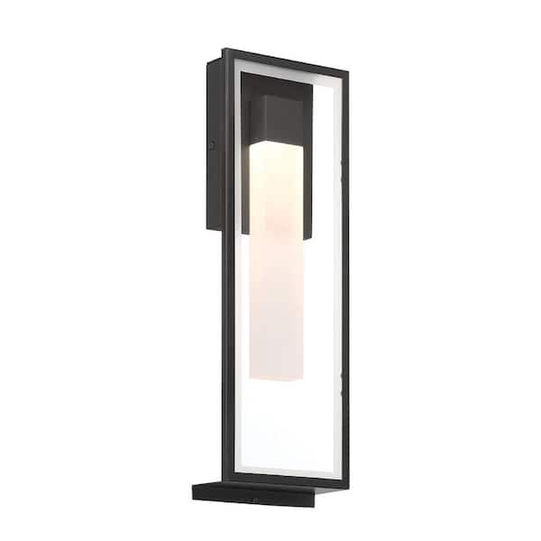 18 in. Black Outdoor Hardwire Wall Lantern Sconce with Integrated LED