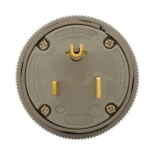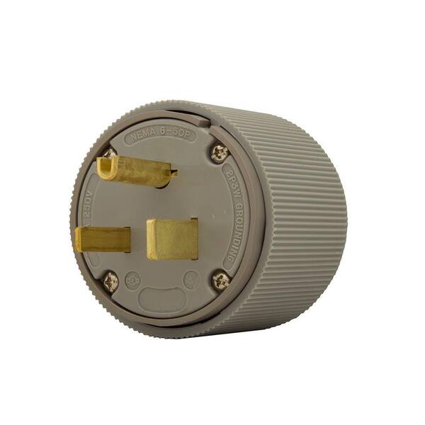 50 Amp 250-Volt 6-50 Industrial Power Plug and Connector - Gray