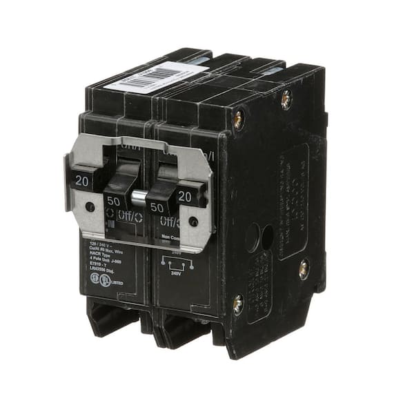 BR 1-20 Amp 2 Pole and 1-50 Amp 2 Pole BQ (Independent Trip) Quad Circuit Breaker