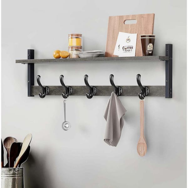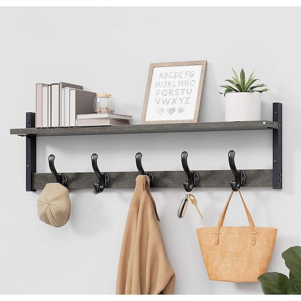 Ebony MDF Wall Mount Coat Rack with Shelf