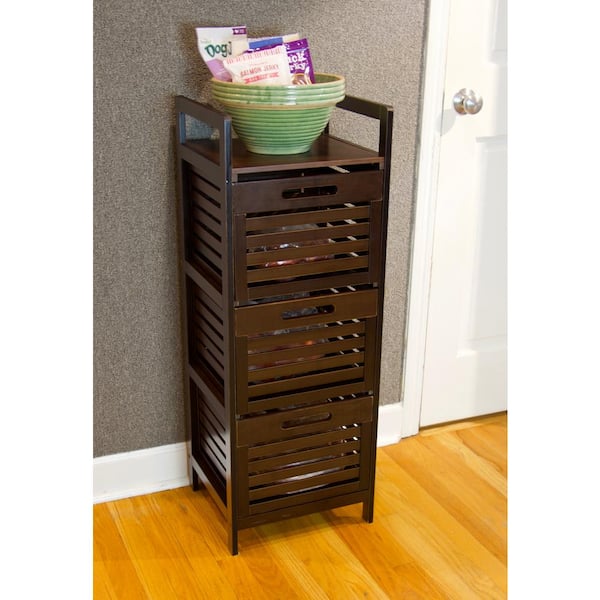 37 in Solid Bamboo Espresso 3 Slatted Drawer Storage Tower